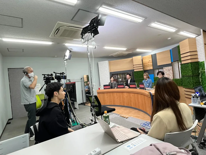 まるでテレビのような本格的なスタジオに、たくさんのカメラ!