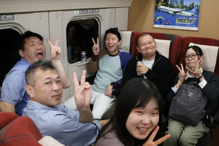 新幹線で新潟へ向かったのですが、行きの新幹線からすでに大盛り上がりの一行。