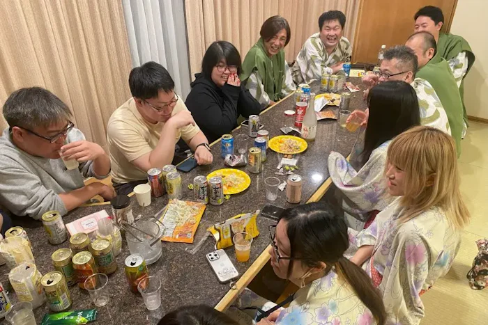 宴会後は各自ゆっくり温泉に浸かり旅の疲れを癒し、そのまま就寝……ではなく、ほとんどのメンバーが再び集まり二次会を楽しみました!